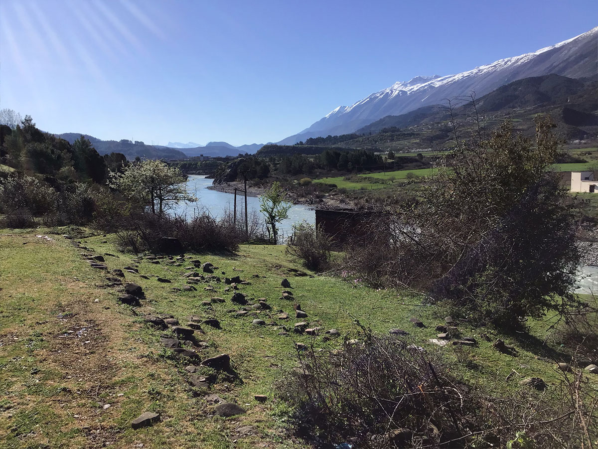 Bei Tepelena erreichen wir das Vjosatal: Psychedelische Schönheit, ein Frühlingsmorgen in fast obszöner Farbenpracht: Schnee auf den Bergspitzen, lilablühende Judasbäume auf den Terrassen der Hänge, die Wiesen in üppigem Grün, durchsetzt mit Massen von Frühlingsblüten, Rosmarinsträucher und wilde Anemonen blühen am Wegrand. Im Talgrund, majestätisch, die Vjosa, der letzte nicht regulierte Fluss Europas. „Die Zeit“ schrieb 2021: “Die Vjosa nimmt fast den gesamten Talkessel ein, sie macht sich gut zwei Kilometer breit, wird dann wieder schmaler, mal erhöht sie ihr Tempo, mal bremst sie sich. Ständig verändert sie ihr Gesicht. Sie ist eigenmächtig, sie tut, was sie will, sie spielt mit der Landschaft.” Bei genauerem Hinsehen offenbaren sich auch die Schattenseiten dieser wilden Flusslandschaft. Wilde Müllhalden, die offensichtlich über das regelmäßige Hochwasser entsorgt werden. Reste von Plastik und Textilien schmücken wie tibetanische Gebetsfahnen die Bäume des gesamten Ufers. Entlang des Flusses ziehen große Schaf- und Ziegenherden samt dazugehörigen Schäfern, die an Hirtenstäben lehnen. Nur ihre Mobiltelefone passen irgendwie nicht in die bukolische Romantik. →