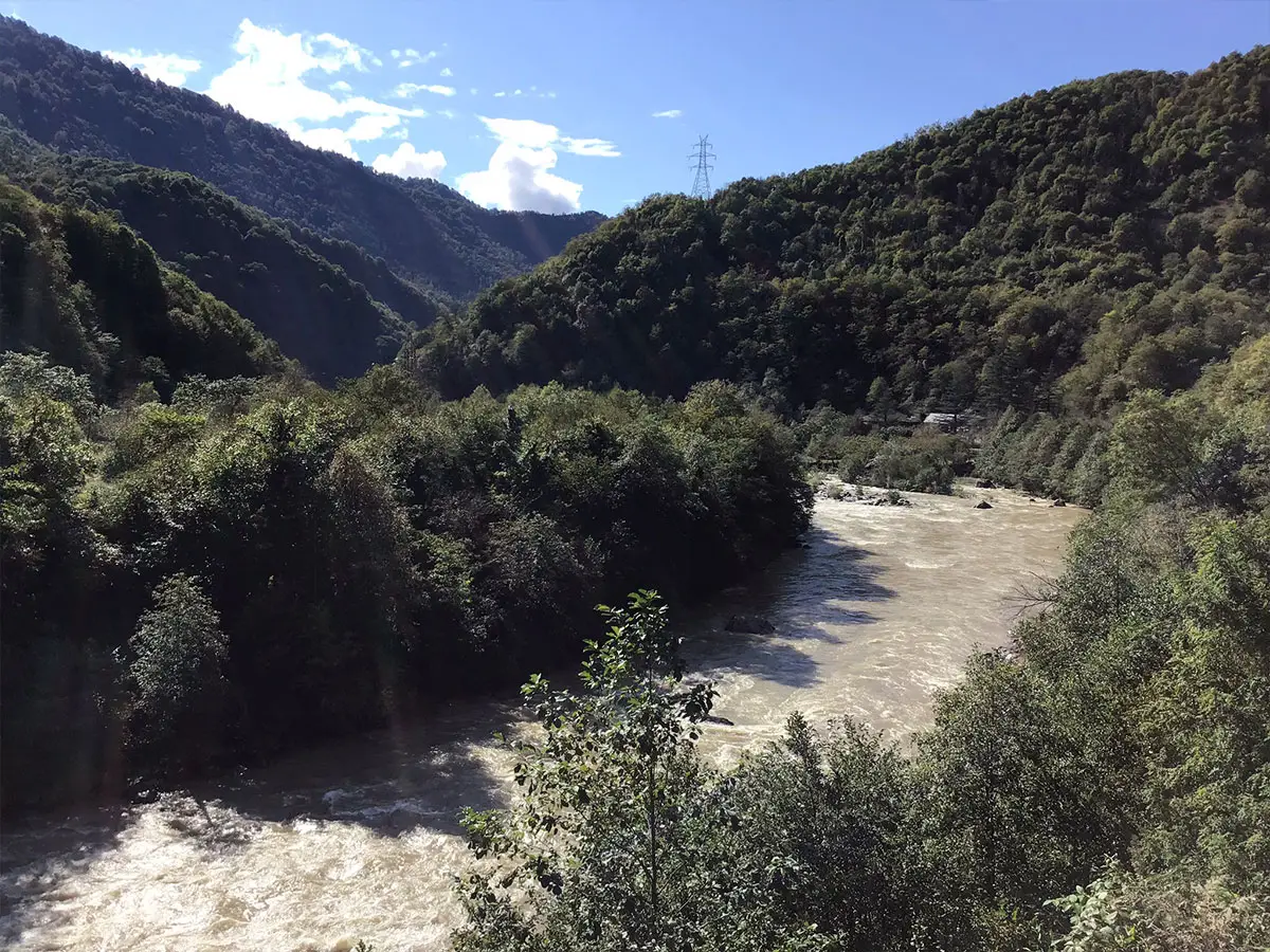 Wir verlassen Adjarien in Richtung der südöstlich gelegenen Nachbarregion Meschetien und folgen dabei dem spektakulären Lauf des Flusses Mtkvari. An waghalsige Überholmanöver und weidende Kühe auf dem Mittelstreifen der Autobahn haben wir uns mittlerweile gewöhnt. Zu schaffen machen uns allerdings die tiefen Schlaglöcher auf der Straße, die plötzlich aus dem Nichts auftauchen. Karges, hügeliges Weideland und Gebüsch mit wenigen Bäumen entlang des mäandernden Gewässers dominieren die Landschaft.