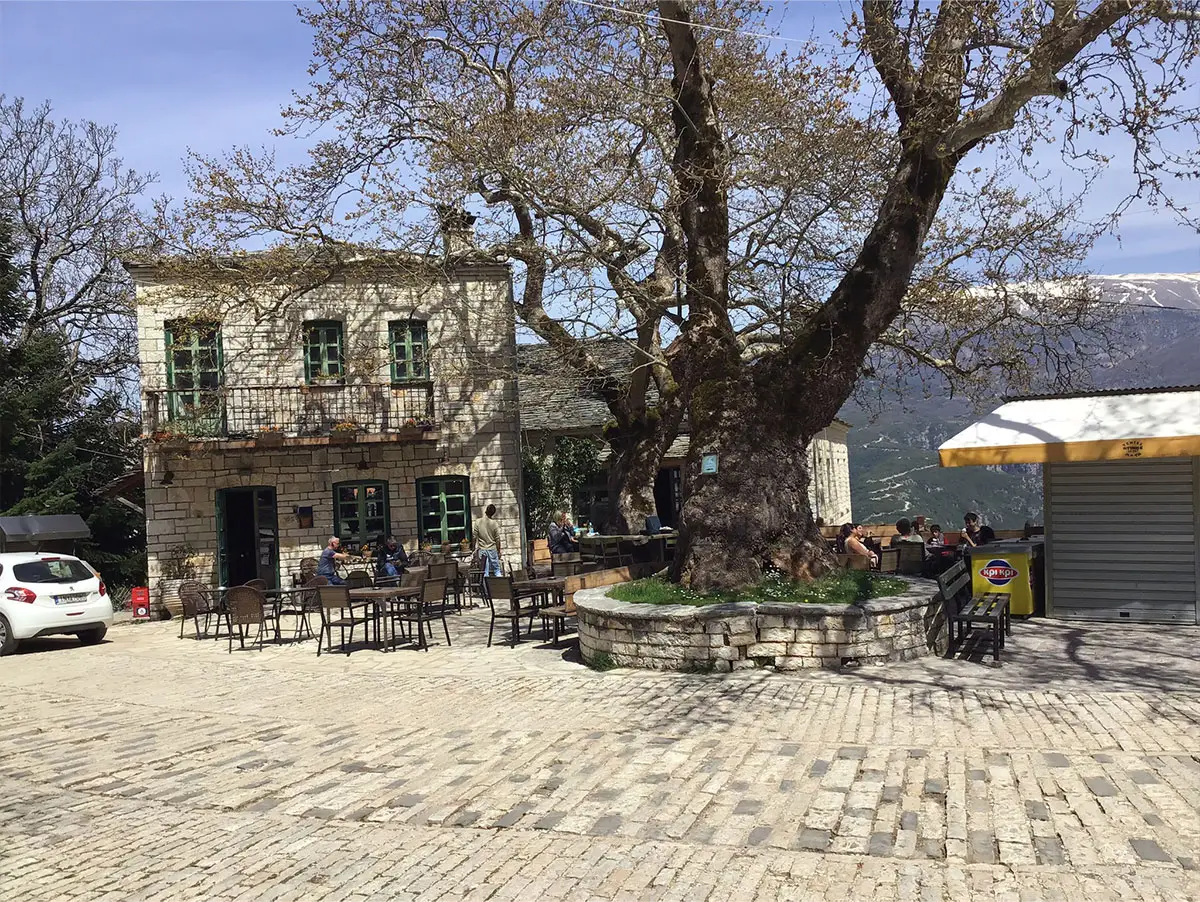 Vradeto ist eines der 50 Bergdörfer der Gemeinde Zagoria. Der kleine Ort war bis 1970 nur durch eine Steigtreppe mit 1.100 Stufen erreichbar. Sanfter Tourismus in allen Entwicklungsstufen prägt die Ortschaften von Zagoria und das in unterschiedlicher Weise. Aristi mit seinen komfortabel ausgebauten Gästehäusern erpfängt 70 % seiner Besucher aus Israel. Papigo und das etwas höhergelegenen Micro Papigo zieht Kletterer und Wandertouristen an, die auf den 2.436 m hohen Astraka steigen. In Vikos und Koukouli treffen sich deutsche Camper. Das hochgelegene Vradeto hingegen scheint vom Tourismus noch weitgehend unberührt. Was allen diesen Orten gemeinsam ist: Strenge Auflagen beim Hausbau und bei der Renovierung von Altbauten und damit ein einheitlicher Baustil. Die Häuser werden ausschließlich mit Stein gedeckt. →