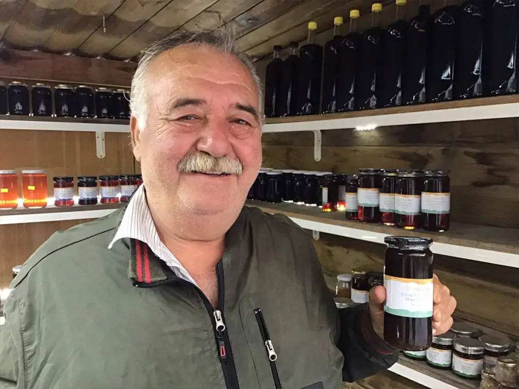 Unsere Suche nach gutem Pinienhonig gestaltet sich nicht einfach. Überall am Straßenrand wird er an kleinen Ständen unter der Bezeichnung „Çam bali“ zum Verkauf angeboten. Unser Gewährsmann für den guten Honigkauf ist der 57 Jahre alte Imker und Gastwirt Şenol Şahin. Für das Abendessen in seinem  Restaurant Şahin in Bayir hat er Fisch besorgt, was außerhalb der Saison nicht ganz einfach ist. „Vater und Großvater waren bereits Imker, mein Sohn übernimmt vielleicht einmal den Betrieb“, erzählt Şenol stolz in einem Mix aus Deutsch und Englisch, während er das Abendessen serviert. Seine Gäste hätten es ihm beigebracht. Mit der diesjährigen Ernte ist er zufrieden. Vom Pinienhonig gab es 25 kg pro Bienenvolk, von anderen Sorten weniger. Pinienhonig ist hier in den Bergen die wichtigste Honigsorte. An der Küste gibt es viel Thymian-, Eukalyptus- und Johannisbrotbaumhonig. Rege Wandertätigkeit mit den 600 Bienenvölkern bis weit ins anatolische Hochland hinein, erweitert das Sortenspektrum der Imkerfamilie Şahin um Fenchel-, Astralagus- und den besonders begehrten Schwarzkümmmelhonig.